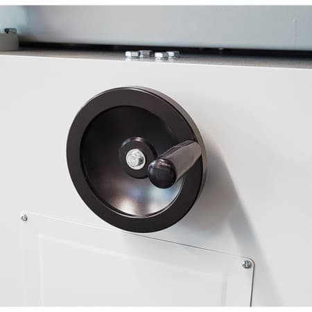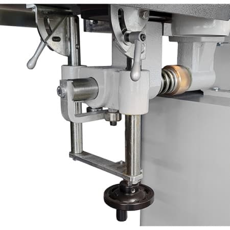 - Front, Back and Side tables are adjustable in height by handwheel and can be tilted for bevel sanding operations