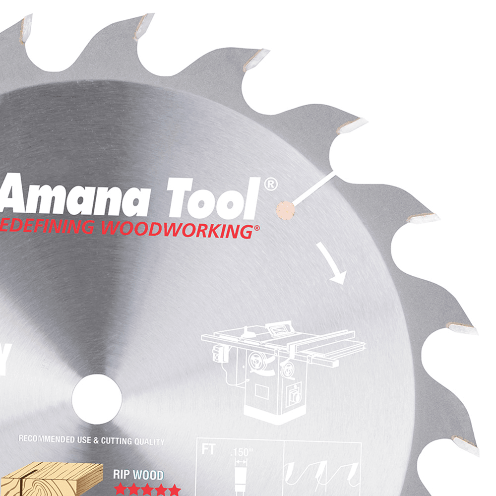 Heavy-duty production ripping is this blade's forte. It has all the features needed for use with power feeders and gang-ripping operations a low tooth count, flat-top grind, deep gullets for efficient chip clearance and a thick plate for reduced vibration. 2.4mm of plate.