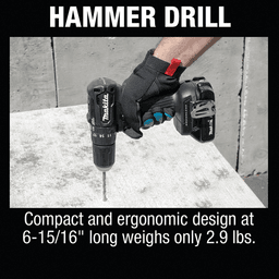 Hammer driver-drill weighs only 2.9lb with battery for reduced operator fatigue