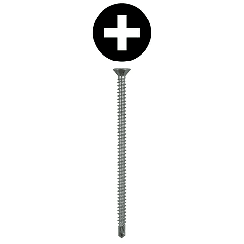 #8 x 3" Flat Head Installation Screws, Phillips Drive Partial Thread and Self Drilling Point, Zinc, Box of Hundred by Quickscrews