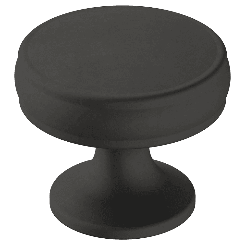 Amerock Renown 1-1/4 in (32 mm) diameter knob is finished in Matte Black. The Renown collection imparts timeless style that enhances any decor with delicate, approachable refinement. With its shimmering mirrorlike nature, the slightly cool blue undertones of Matte Black enhance the surface of any product.