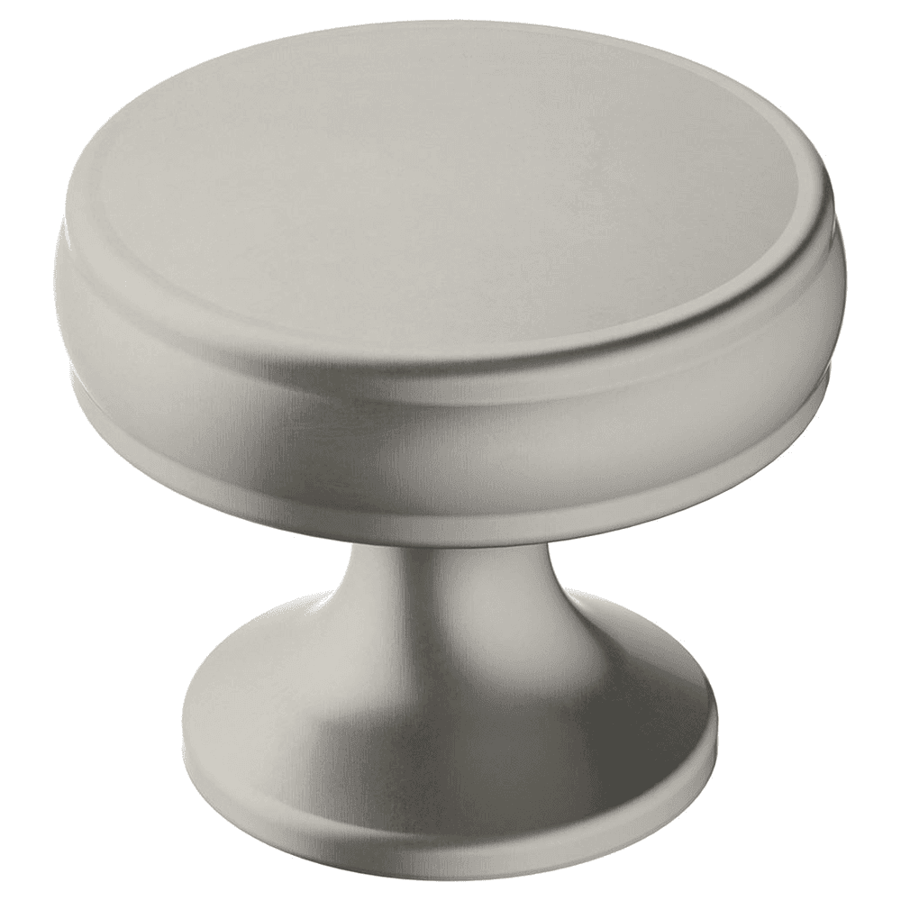 Amerock Renown 1-1/4 in (32 mm) diameter knob is finished in Satin Nickel. The Renown collection imparts timeless style that enhances any decor with delicate, approachable refinement. With its shimmering mirrorlike nature, the slightly cool blue undertones of Satin Nickel enhance the surface of any product.