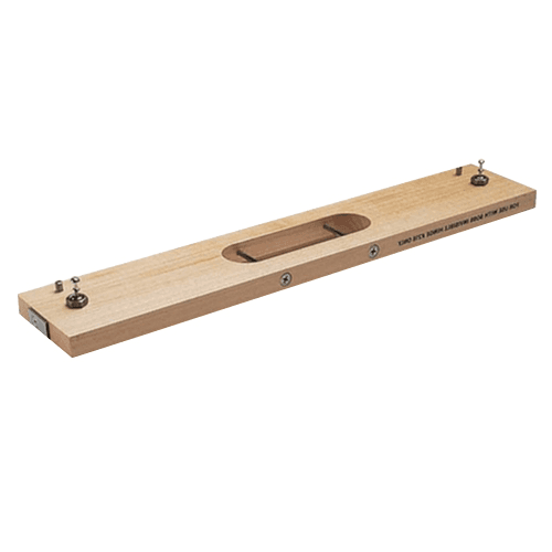 SOSS Invisible Hinges now can be installed easier and faster than ever before. Each router guide template is individually handcrafted for exactness. The template is held on the door and jamb with nails; guide pins locate the deep mortise. The edges of the template assure a perfect outline when used