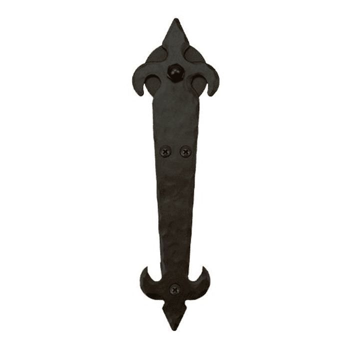 Fleur-De-Lis Style Strap with Roller Front Mount for Rolling Barn Doors, Black