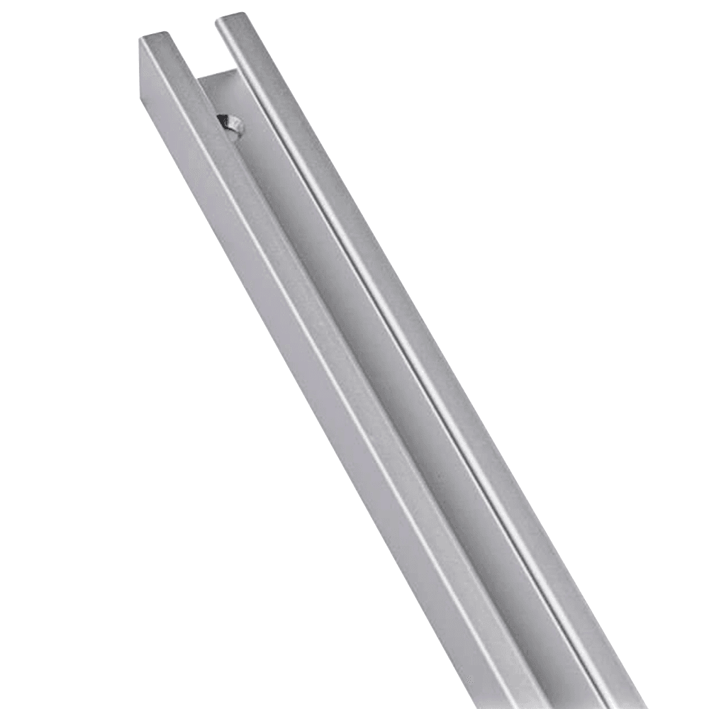 The 3' C-Style track is satin aluminum finish for SH14, SH15A, SH15B, SH15C, SH15D, SH15E, SH16A, SH16B & SH16C shelf supports. Can be surface mounted or flush mounted into a slot 11/16" wide by 1/2" deep. Comes with a clean and unobstructed channel to positively lock the brackets.