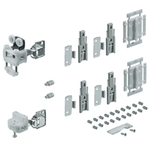 Set of fittings contains all the parts required for 1 folding sliding door with 2 wings