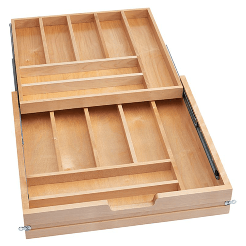 Double up your drawer space with this Two-Tiered drawer. This drawer box comes pre-assembled and ready to install into your existing cabinet drawer opening.
