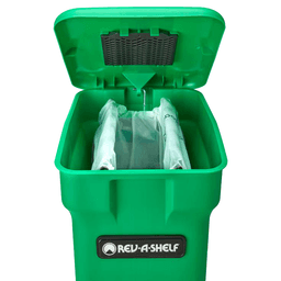 This practical solution lets you discard food scraps and easily transfer them to a larger compost bin for future use in flower beds, gardens and lawns. The 4WCSC-CP is designed for 18" base cabinets and comes with a 35 qt. polymer waste bin and a single compost that features Biodegradable liners, a no-mess trash carriage that opens when the lid is raised and seals when the lid is closed, a carbon filter that eliminates odors and air vents to help speed the compost process.