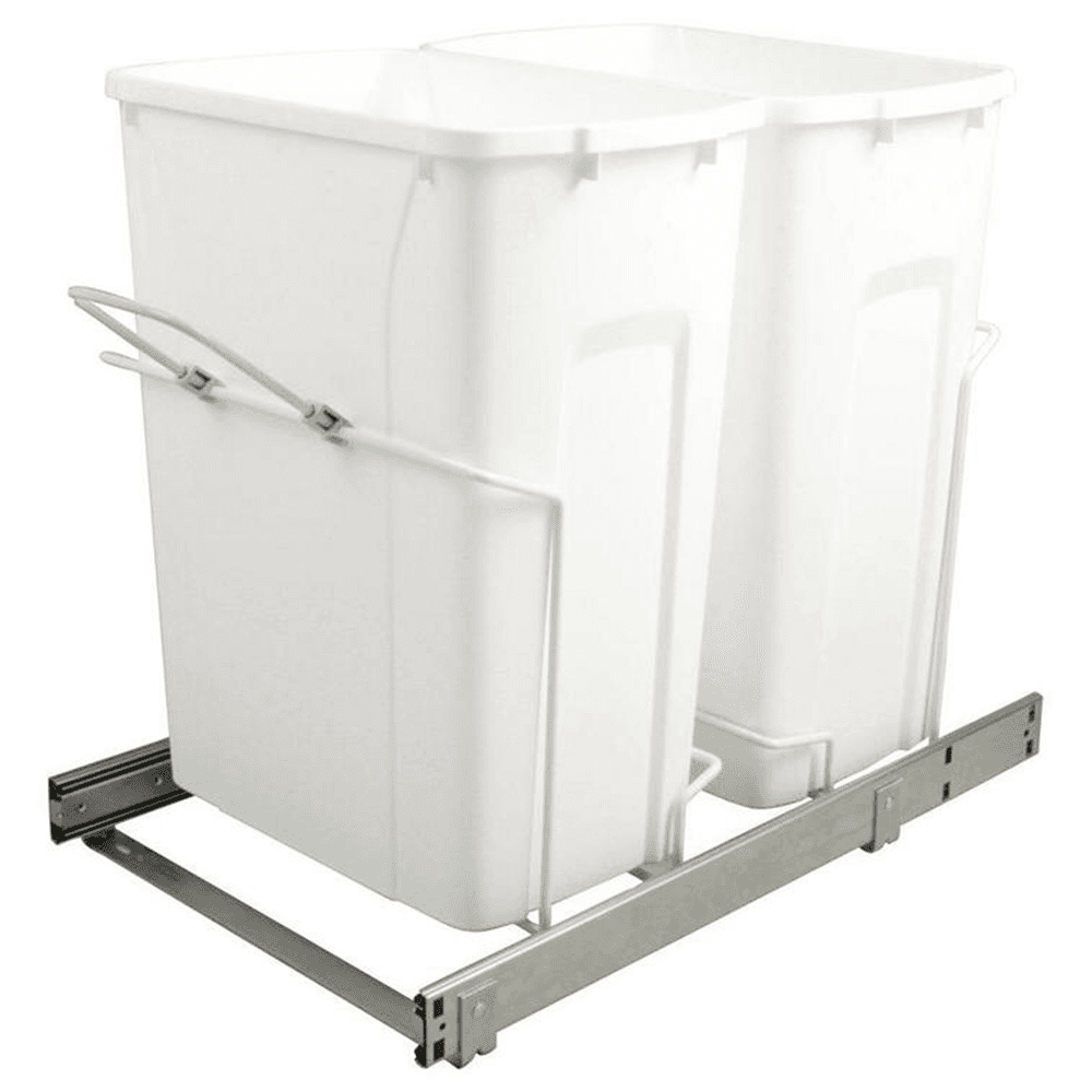 Double 35 QT Bottom-Mount Waste Container Pullout with Soft-Closing for 15" Width Cabinet Opening, White