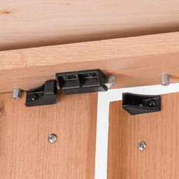 Eliminates the need for an elbow catch, or other devices, and allows hardware to be installed out of the way.