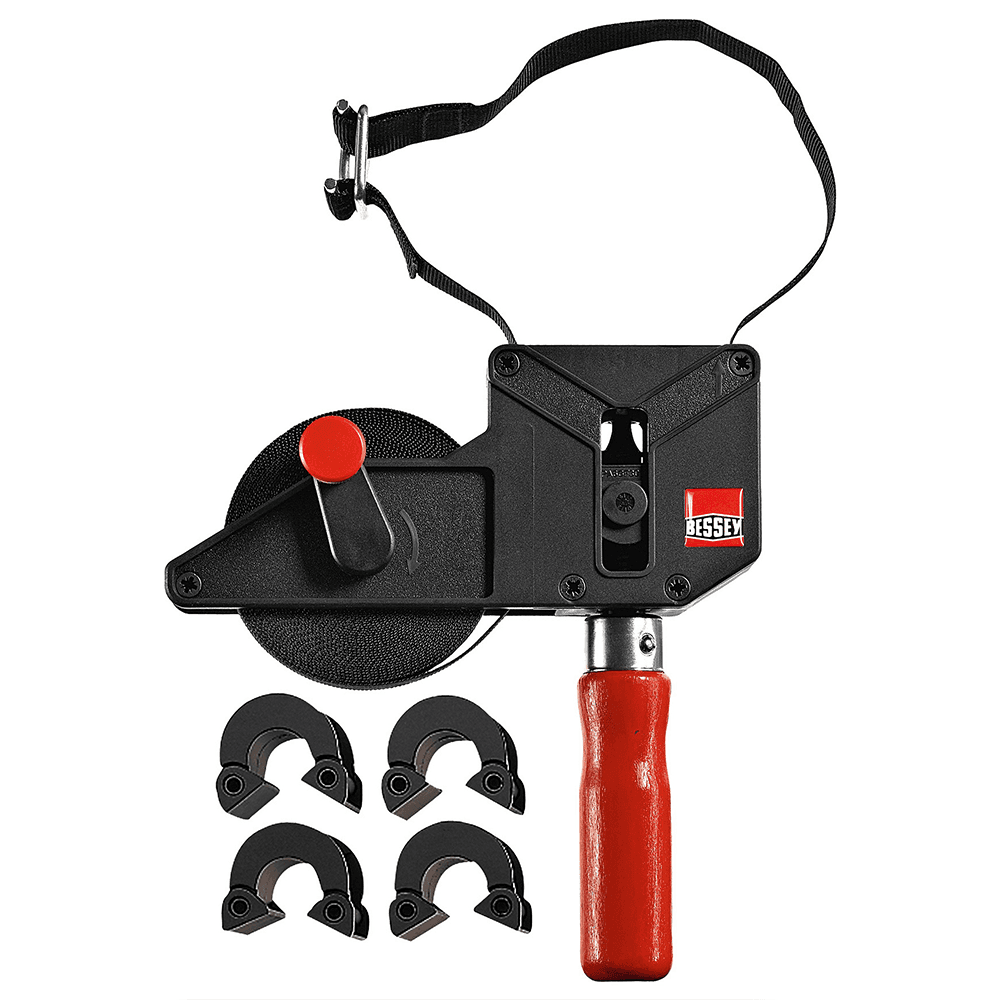 Clamping large or odd shapes with straps is not a new idea; however, most strap clamps exert force (pull) in only one direction. Strap clamps like this can easily distort/skew the work piece. Bessey's VAS-23 is different, it pulls equally on both ends of the strap, eliminating the chance of skewing your work piece to one side. The high tensile woven polyester strap is extremely strong & there is a built in take up reel that neatly stores the excess strap; eliminating a potential tripping hazard.