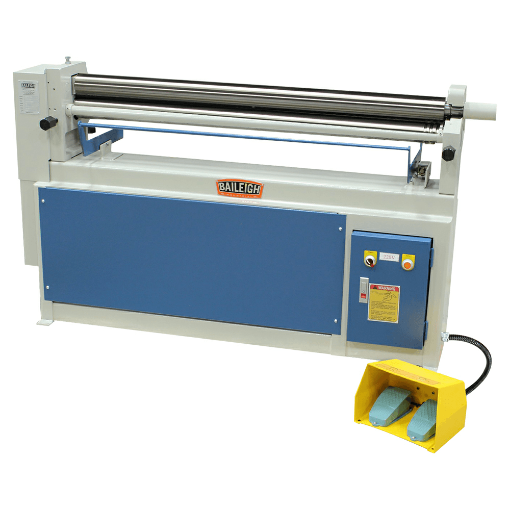 This electric slip roll can save time and effort in any HVAC shop or general fabrication shop. Its solid plate steel upper main frame is precisely machined to keep all 3 rolls in alignment. Features: 50" working width Can roll 16-gauge mild steel with ease 1 hp motor runs on 220-volt single-phase power Motor controls the movement of 2 driven rolls, so the SR-5016 has enough power for almost any job, anywhere Includes foot pedal for both left and right rolling applications All-steel lower base is fully welded and integrated with the uprights for rigidity Comes with 3 grooves for rolling wire or rod Integrated emergency stops to help maintain a safe workplace