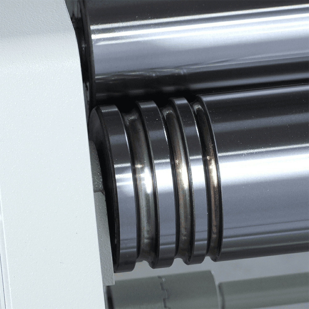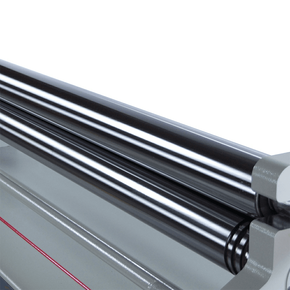 The PR-514 is the perfect plate roll for small and medium applications. It comes standard with time-saving features, like a DRO, foot pedal controls, and an additional hydraulic motor. Features: 5' working width 14-gauge mild steel capacity across its full width 2 hp 220-volt single-phase motor transfers power directly to the driven rolls Second hydraulic motor controls the movement of the back roll Remote control pedestal includes foot pedal controls and the buttons for advancing or retracting the back roll position Digital readout displays back roll position so you can repeat bends easily DRO is positioned at the head of the machine, giving you a good line of sight no matter where you're standing Rigid steel frame, machined to exacting tolerances, helps prevent deflection