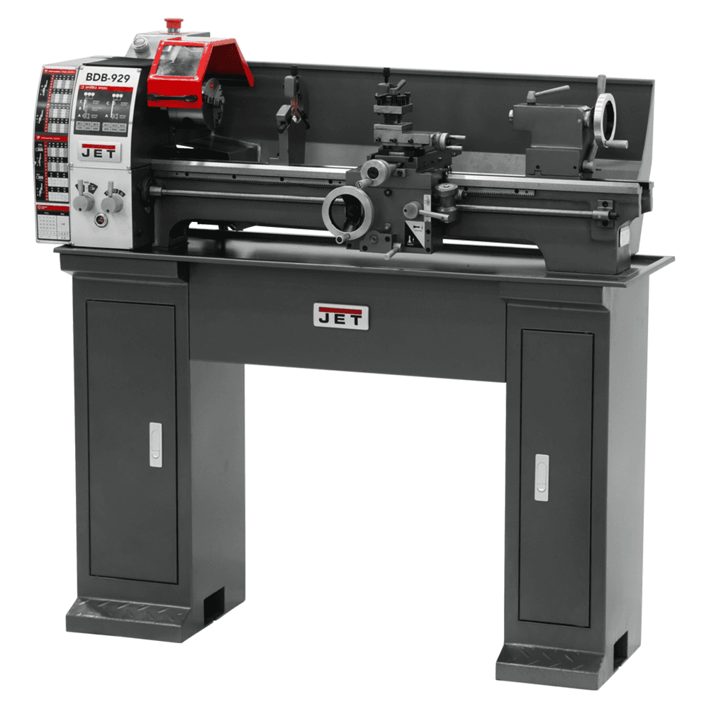 The BDB-929 benchtop lathe is the essential step to improving your shop's capabilities. Engineered with precision induction hardened ground bed-ways and precision tapered roller bearings the BDB-929 delivers the smooth operation and rigidity needed to craft professional pieces. Features: Backlash adjustments provided throughout the carriage Emergency stop within easy reach of the Operator Full Length Splash Guard Induction hardened and ground bedway Power longitudinal feed allows threading and reverse threading Quick change gearbox provides wide range of inch and metric threads Reversing switch for added versatility Safety on/off switch Spindle supported by precision tapered roller bearings Standard Accessories