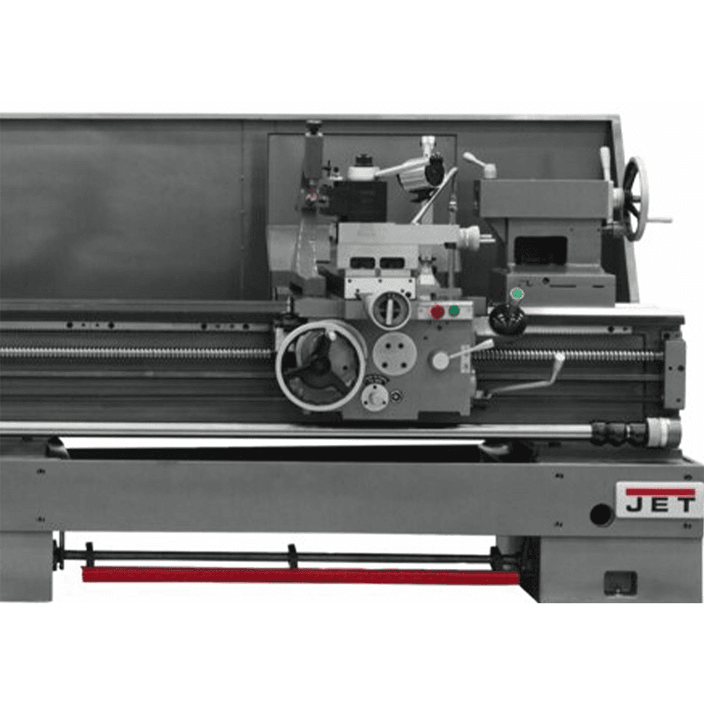 Constructed using the Certified Meehanite® casting process for added durability, the Jet ZH-Series 4-1/8" Spindle Bore Lathes provide consistent and reliable operation. Features include a clutch operated headstock with all headstock gears hardened and ground, a universal gearbox, fully integrated coolant system, and a rapid traverse on the apron that makes the ZH-Series perfect for high-output production applications. These are the features you've come to expect in a Jet Lathe that is backed by the industry-leading Jet Two Year Warranty. Features: 12" 3 Jaw scroll chuck with top reversing jaws 2 Steady rests with roller bearings Bed ways are induction hardened and ground for durability E-Stop on Carriage for added safety Electronic Chuck Key Holder Fitted top mats to hold tooling Full Length Splash Guard Heavy-duty tailstock and quill Large easy to use foot brake Rapid power traverse to cross slide and carriage