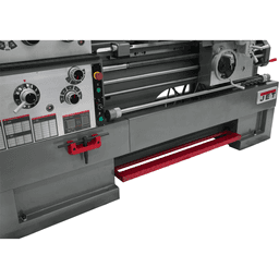 The ZX-Series Large Spindle Bore Lathe provides power, precision, efficiency, and reliability to your metal shop. A one-piece cast iron base absorbs vibrations during operation to allow heavier cuts and ensure accuracy, while the universal gearbox eliminates the need to change gears. This lathe also features a 10" three jaw scroll chuck with top reversing jaws, and an e-stop on the carriage for increased operator safety. Features you've come to expect in a Jet Lathe that is backed by the industry-leading Jet Two Year Warranty. Features: Articulating LED work lamp Centrally located controls with jog button Electronic Chuck Key Holder Five position automatic carriage stop increases productivity Full length splash guard and coolant return Large capacity steady rest with ball bearing tips Large easy to use foot brake Mounting pads and levelers Removable gap allows large diameter work Tool box and adjusting tools