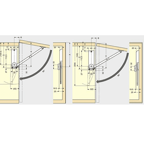 • Torque Calculation: Torque = Door Height × 1/2 × Door Weight, H-Type (Heavy Duty): 250 - 300 kg - cm (216 - 260 lbs. - inch)/pair