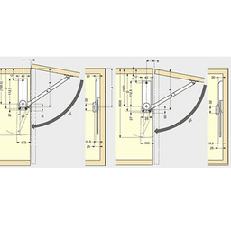 • For upward-opening flap door used with piano, butt or concealed hinges