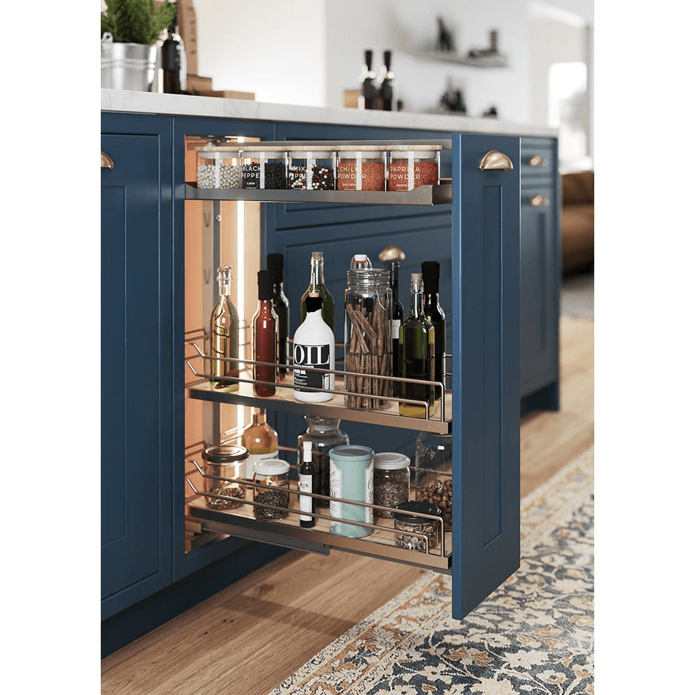 Base Pullout combines style, convenience, and versatility. Mix and match shelving and accessories to create a unique kitchen base cabinet pullout that suits your individual needs. The unique top and bottom mounted runners make for a smooth open and soft-close. Optional accessories such as our Spice Tray rollout spice rack, Baker’s Tray cutting board and sheet pan holder, or YOUBOXX organizational system allow you to customize your base cabinet.