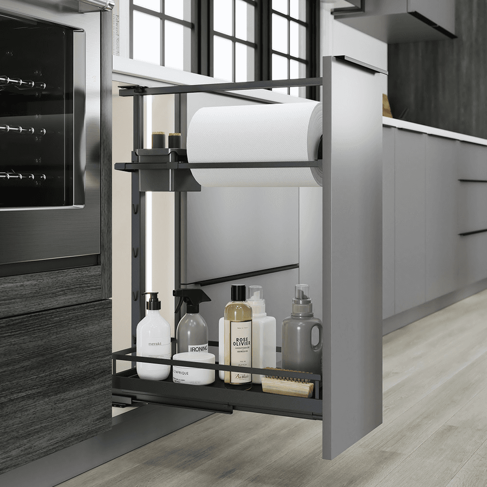 Base Pullout combines style, convenience, and versatility. Mix and match shelving and accessories to create a unique kitchen base cabinet pullout that suits your individual needs. The unique top and bottom mounted runners make for a smooth open and soft-close. Optional accessories such as our Spice Tray rollout spice rack, Baker’s Tray cutting board and sheet pan holder, or YOUBOXX organizational system allows to customize your base cabinet.