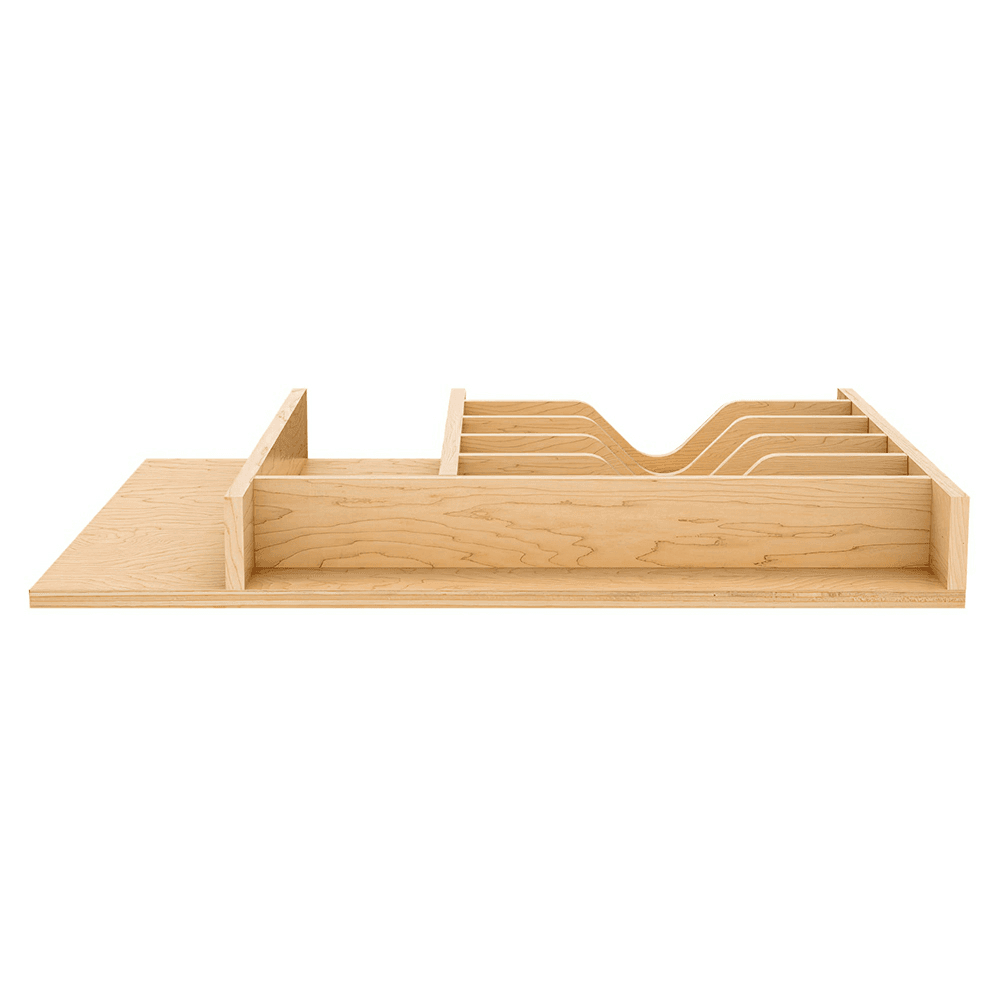 Organize kitchen drawers with Rev-A-Shelf′s Wood Cutlery Tray Insert. The 4WCT Series is made of our classic Maple hardwood with a UV cured clear finish to ensure an acceptable match to any kitchen cabinet. This modern day clutter solution requires a simple drop-in installation with two sizes that may be trimmed to fit various drawer sizes.