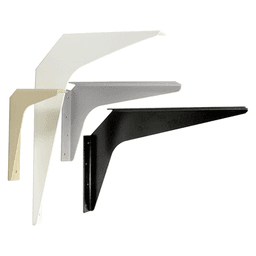 8" x 12" heavy duty workstation bracket in white finish 1/8" steel construction Multiple 1/4" mounting holes per side 1000 lbs load capacity (per pair) Primed option for an onsite or custom finish Brackets are reversible Sizes 3" x 3" (45° notch) to allow for a wall cleat and wiring Application: Counter tops Garage Workshop Work surfaces Heavy parts storage Book shelves Closet shelves ADA applications Training areas BenchesSpecifications