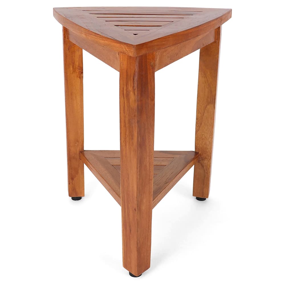 This stool is constructed of 100% sustainably sourced solid teak hardwood. With a superior quality you can trust, the Sereni teak shower stool can be utilized as an alternative to temporary and built in shower benches. Its versatility also gives you the option to also use it as a spare seat, foot stool, side table, and more in both an indoor or outdoor setting. The non-slip rubber feet provide the perfect stability for a shower or bathroom. Additionally, the materials used are built to withstand harsh, humid, and wet environments. The Sereni teak shower stool is ready to use in your relaxing space with no assembly required.