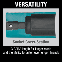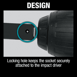 Chromium-molybdenum steel (CRMO) construction for added durability and long life 3-3/16" deep for longer reach and the ability to fasten over longer threads Locking hole keeps the socket securely attached to the impact Laser etched for easy identification High strength 6-point drive sockets for Xtreme torque applications Black oxide coated to resist corrosion for longer socket life 1/2" drive designed to handle the most demanding applications For fastening nuts onto bolts in high torque applications Sockets are ideal for use with impact drivers (with adapter), impact wrenches and ratchetsSpecifications