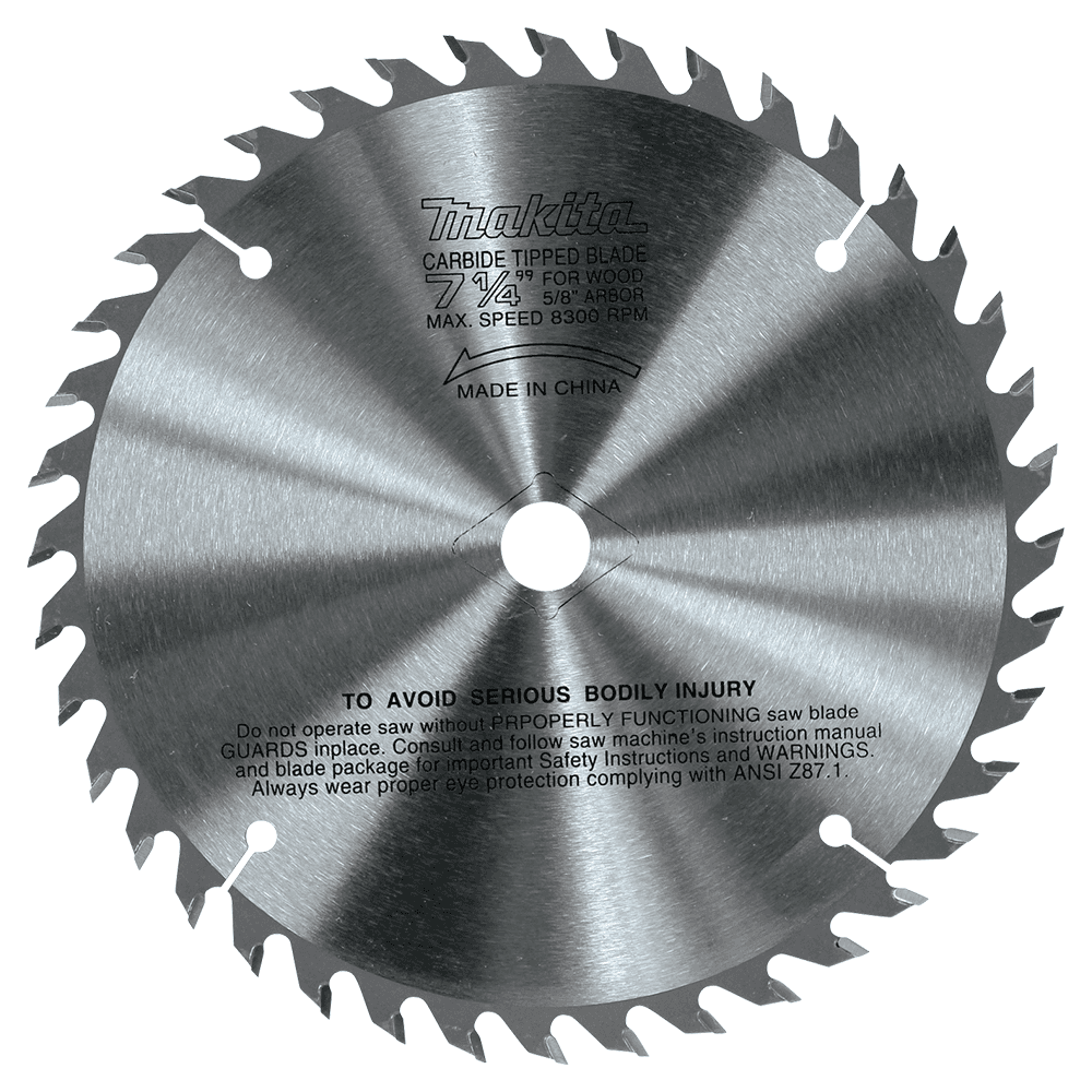 The Makita 7-1/4" 40 Tooth fine crosscutting carbide-tipped circular saw blade is expertly tensioned for true cuts. The blade is designed for use in fine crosscutting applications. Carbide tooth design for quality cuts and longer life.