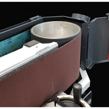 - Large cast aluminum work table with corner side table for curved sanding