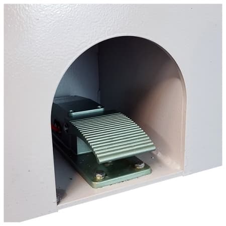 - Pneumatic foot pedal operation with adjustable cutting speed from the front of the machine