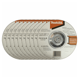 7" 24 grit hubbed grinding wheel Hubbed design for quick wheel changes Aluminum oxide abrasive grains are evenly distributed to give a smooth surface Innovative grain structure engineered for optimum performance, efficient material removal and longer wheel life Ideal for grinding ferrous metals and metal polishing Constructed with aluminum oxide grade 24 For use with 7" angle grinders Convenient 10 packSpecifications
