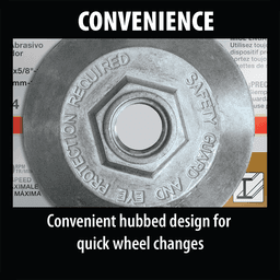 5" hubbed Inox 36 grit grinding wheel Aggressive composition for faster material removal Innovative design for reduced noise Reduced vibration for superior user experience High strength bonding agent for added durability and long life 36 abrasive grit for efficient material removal; 1/4" thick "N" grade hardness is ideal for working with stainless steel High quality reinforcement for improved performance through out the life of the wheel White aluminum oxide abrasive Hubbed design for quick wheel changes For use with 5" angle grinders grinding steel and stainless steelSpecifications