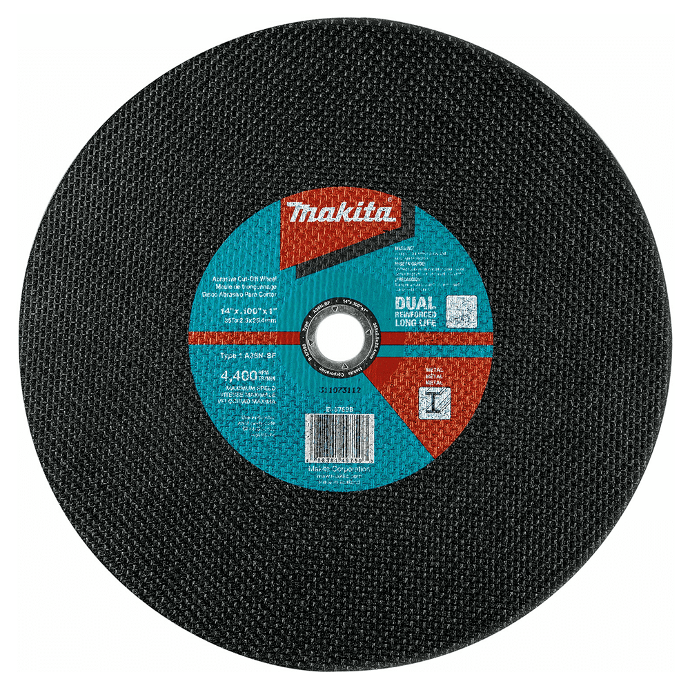 The 14" x 1" x 3/32" abrasive cut-off wheel, 25/pk. (B-57598-25) is double reinforced for longer life, less burr and less vibration. Designed for cutting heavier gauge metal such as pipe or angle iron, the abrasive cut-off wheel is ideal for use with 14" cut-off Saws. A special bond is engineered to improve cutting speed and wheel life.