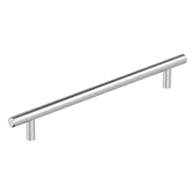 Modern functionality meets straightforward styling. The streamlined design of the Bar Pulls collection makes a statement with clean lines and smooth textures. Features: 8-13/16" bar pull in stainless steel finish Contemporary style adds an easy designer upgrade to any cabinet drawer, cabinet door or furniture piece High quality carbon steel construction for lifelong durability Mounting hardware included for quick and easy installation Coordinates seamlessly with finishes from popular plumbing and lighting brands Complete with limited lifetime warranty against defect in material and craftsmanship Complete your personalized look with matching drawer pulls from the Amerock Bar Pulls collection Included Hardware: #8-32 x 1" and #8-32 x 1-1/2" Truss Head Machine Screws