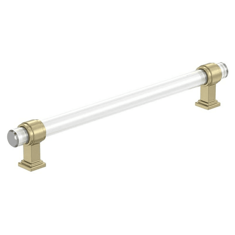 In the Glacio collection, graceful metallic mountings hold clear accents that seem to float above the surface for an ethereal look and feel. Features: 8" Glacio cabinet pull in clear/golden champagne finish Contemporary style adds an easy designer upgrade to any cabinet drawer, cabinet door or furniture piece Hand polished tempered glass construction for superior clarity Mounting hardware included for quick and easy installation Coordinates seamlessly with finishes from popular plumbing and lighting brands Complete with limited lifetime warranty against defect in material and craftsmanship Complete the look with matching drawer pulls and bath hardware from the Amerock Glacio collection Included Hardware: #8-32 x 1" and #8-32 x 1-1/2" Truss Head Machine Screws