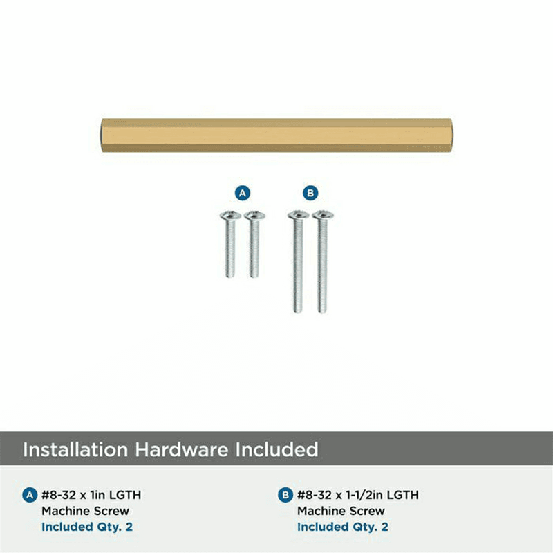 Featuring a geometric aspect that puts a twist on a typical bar pull in the Caliber collection creates a lasting impression with its contemporary, chic appeal. Features: 3" Caliber cabinet pull in golden champagne finish Contemporary style adds an easy designer upgrade to any cabinet drawer, cabinet door or furniture piece High quality zinc construction for lifelong durability Mounting hardware included for quick and easy installation Coordinates seamlessly with finishes from popular plumbing and lighting brands Complete with limited lifetime warranty against defect in material and craftsmanship Complete your personalized look with matching drawer pulls from the Amerock Caliber collection Included Hardware: #8-32 x 1" and #8-32 x 1-1/2" Truss Head Machine Screws