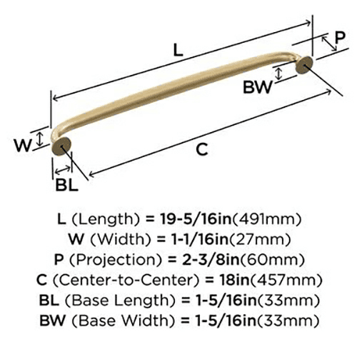A nod to new traditional style, the Renown collection imparts refined simplicity and approachable character that enhances the decor. Features: 18" Renown appliance pull in matte black finish Traditional style adds an easy designer upgrade to any cabinet drawer, cabinet door or furniture piece High quality zinc construction for lifelong durability Mounting hardware included for quick and easy installation Coordinates seamlessly with finishes from popular plumbing and lighting brands Complete with limited lifetime warranty against defect in material and craftsmanship Perfect statement piece for appliance cabinets, large cabinet doors or cabinet drawers Included Hardware: #10-24 x 3/4", #10-24 x 1", #10-24 x 1-1/4", #10-24 x 1-1/2" and #10-24 x 1-3/4", #10-24 x 2-1/8" Truss Head Machine Screws, Washers