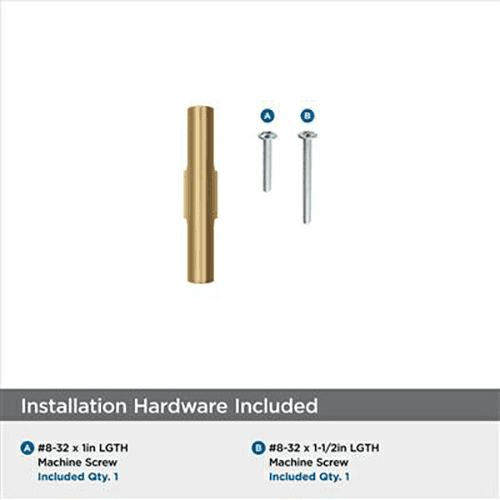 Clean lines and thoughtfully executed proportions give the Riva collection a streamlined appearance for stand-out style. Features: 2-1/2" Riva cabinet t-knob in champagne bronze finish Contemporary style adds an easy designer upgrade to any cabinet drawer, cabinet door or furniture piece High quality zinc construction for lifelong durability Mounting hardware included for quick and easy installation Coordinates seamlessly with finishes from popular plumbing and lighting brands Complete with limited lifetime warranty against defect in material and craftsmanship Complete your personalized look with matching cabinet knobs from the Amerock Riva collection Included Hardware: #8-32 x 1" and #8-32 x 1-1/2" Truss Head Machine Screws