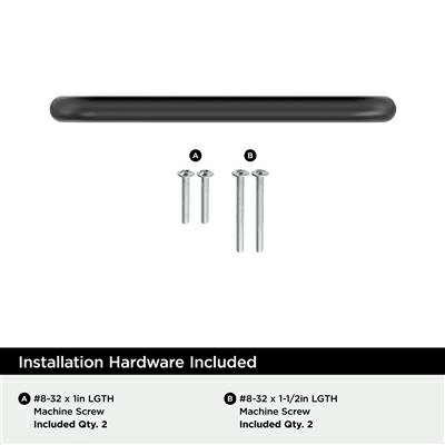 Marrying beauty and function, Everyday Basics provides a varied selection of styles in on-trend finishes. Ideal for residential or commercial applications, Everyday Basics offers the best combination of approachable artistry and lasting quality. Features: 3-3/4" Wire Pulls Cabinet pull in matte black finish Contemporary style adds an easy designer upgrade to any cabinet drawer, cabinet door or furniture piece High quality carbon steel construction for lifelong durability Mounting hardware included for quick and easy installation Coordinates seamlessly with finishes from popular plumbing and lighting brands Complete with limited lifetime warranty against defect in material and craftsmanship Mix and match with coordinating Amerock drawer pulls in matching or complementary finishes to create a unique custom look Included Hardware: #8-32 x 1" and #8-32 x 1-1/2" Truss Head Machine Screws