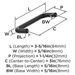 Marrying beauty and function, Everyday Basics provides a varied selection of styles in on-trend finishes. Ideal for residential or commercial applications, Everyday Basics offers the best combination of approachable artistry and lasting quality. Features: 3" Wire Pulls Cabinet pull in oil-rubbed bronze finish Contemporary style adds an easy designer upgrade to any cabinet drawer, cabinet door or furniture piece High quality carbon steel construction for lifelong durability Mounting hardware included for quick and easy installation Coordinates seamlessly with finishes from popular plumbing and lighting brands Complete with limited lifetime warranty against defect in material and craftsmanship Mix and match with coordinating Amerock drawer pulls in matching or complementary finishes to create a unique custom look Included Hardware: #8-32 x 1" and #8-32 x 1-1/2" Truss Head Machine Screws