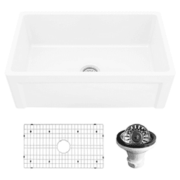 Upgrade your kitchen with the Karran Fireclay FCP30SBWH 30" Single Bowl Apron Front Farmhouse Sink. Handcrafted from 100% natural, organic fireclay, this sink combines timeless craftsmanship with exceptional durability. Fired at over 2000°F, this sink offers a superior level of heat resistance, making it an ideal choice for handling hot pots and pans without damage. The sink’s non-porous surface, paired with a special glaze coating, ensures a uniform finish that resists scratches, stains, and discoloration, keeping it pristine through daily use. Built to withstand the demands of a busy kitchen, its robust fireclay construction resists chips, cracks, and high heat while adding a touch of classic farmhouse charm. Features: Fireclay single bowl panel front farmhouse kitchen sink with reversible apron front in white Reversible Apron Front Design: Choose between a decorative panel or sleek flat front for flexible design options to match your kitchen’s style Extreme Durability: Fired at over 2000°F, this high-density fireclay construction resists chips, cracks, and discoloration, ensuring long-lasting strength Scratch & Stain Resistant: The sink’s non-porous surface protects against scratches, stains, and daily wear, keeping it looking fresh for years Included Bottom Grid & Basket Strainer: The bottom grid helps protect the surface from scratches and accidental drops, while the basket strainer ensures proper drainage and prevents clogs Easy Installation: We recommend using the sink as a guide for cutting your countertop to ensure a precise fit Heat Resistant: Withstands temperatures up to 2000°F, making it suitable for placing even the hottest cookware directly into the sink Interior Bowl Dimensions (L x W x D): 28-1/4" x 16-1/4" x 9-1/4" Soundproofing: Naturally sound dampening Accessories Included: Bottom Grid and Basket Strainer Warranty: Limited Lifetime Warranty
