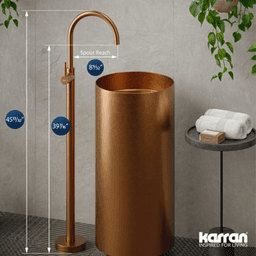Revitalize your bathroom with the Freestanding Floor Mount Bathroom Faucet from the Howick series. This elegant faucet features a minimalist design that seamlessly combines modern aesthetics with functional excellence, ideal for any contemporary bathroom. Designed specifically for use with pedestal freestanding sinks, this faucet adds a touch of sophistication and is perfect for daily use. Features: Howick Single-Handle freestanding bathroom faucet in brushed copper Sleek Single-Handle Design: Provides effortless control over water flow and temperature with a single-handle lever, making daily operations smooth and simple Stable Freestanding Structure: Its floor mount design allows for placement anywhere in the bathroom, offering flexibility and a bold, modern look Non-Swivel Spout: Delivers a stable and precise water stream with a fixed spout, enhancing the faucet′s streamlined design Water Efficiency: Designed to conserve water with a flow rate of 1.5 GPM, making it both eco-friendly and economical High-Quality Construction: Crafted from premium materials to ensure durability and a long-lasting, tarnish-resistant finish Easy Installation: Comes with all necessary mounting hardware for a straightforward setup, designed to integrate seamlessly into your bathroom Certifications: Meets ASME A112.18.1 / CSA B125, NSF/ANSI/CAN 61 standards Warranty: Limited Lifetime Warranty