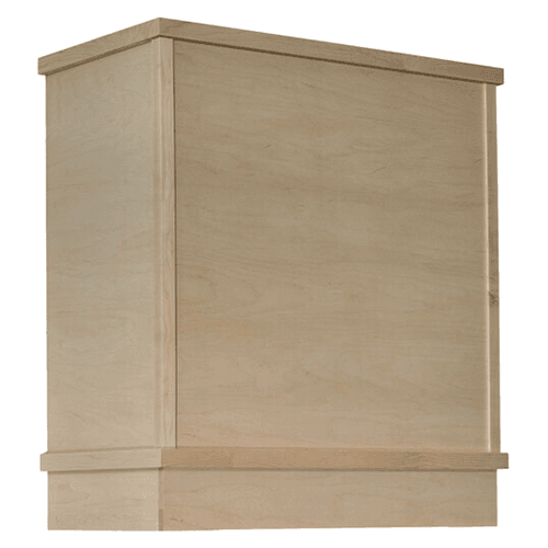 Features: 48" Modern straight range hood in rift white oak finish Perfect for today′s transitional/ contemporary styling in the kitchen All surfaces sanded to 220 grit, ready to finish Includes a silver metallic powder-coated liner that accommodates all Broan ventilation Installs easily using our standard French cleat hanging system