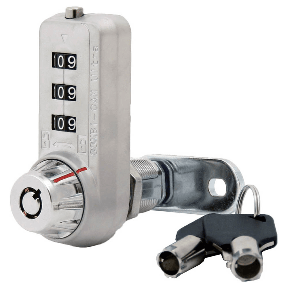 Features: Combi-Cam Ultra - 3-dial rectangular combination cam/locker lock Includes key override and code retrieval capabilities (override keys sold separately) Ideal for locker applications Can be mounted vertically (for doors) or horizontally (for drawers) Durable, all-metal construction Secure with up to 1,000 possible combinations Pick resistant dials Easily set / reset your own combination Replaces any 3/4" cylinder diameter cam lock Works in wood or metal applications NOTE: Override keys are sold separately and are not included with lock. Order override keys as required for your specific application WARNING (California Proposition 65)