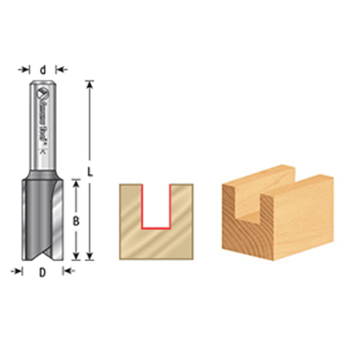 Use a two-flute bit where fine finish is paramount. Two flutes balance the bit, eliminating vibration that degrades the cut finish. Two cuts per revolution yield a smooth surface, but feed rate is slightly reduced. 45190 features a solid carbide cutting edge.